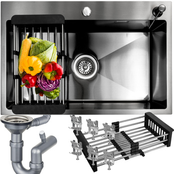 ( ilość produktów: 47 )ZLEWOZMYWAK STALOWY KUCHENNY ZLEW 68x45 cm + OCIEKARKA DOZOWNIK CZARNY PVD