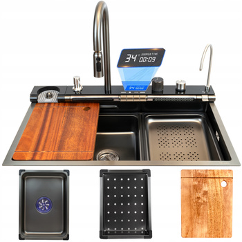 ZLEWOZMYWAK ZLEW STALOWY CZARNY BATERIA NATRYSK KOSZYKI TERMOSTAT SYFON TIK