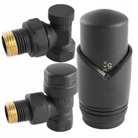 ( ilość produktów: 6 )ZESTAW TERMOSTATYCZNY KĄTOWY 1/2 ANTRACYT GRAFIT ZAWORY GRZEJNIKA MOSIĄDZ