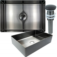 UMYWALKA NABLATOWA STALOWA GRAFITOWA CZARNA SZARA 50 x 35 KOREK DO UMYWALKI