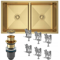 ZLEWOZMYWAK STALOWY ZLEW KUCHENNY ZŁOTY DWUKOMOROWY NABLATOWY PODBLATOWY