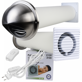 Zestaw wentylacyjny przez ścianę 100 Wywietrznik Ścienny WENTYLATOR WTYCZKĄ
