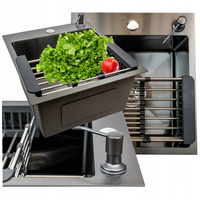 ZLEWOZMYWAK STALOWY KUCHENNY ZLEW 68x45 cm + OCIEKARKA DOZOWNIK CZARNY PVD