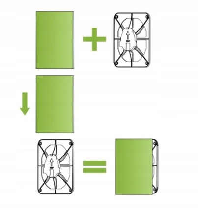 Przykładowy schemat montażu na kratce - dostępnej do zakupu na naszych aukcjach po wpisaniu kodu 02-300. Kratkę wraz z panelem montuje się bezpośrednio na ścianę bez wentylatora najczęściej w przypadku wentylacji grawitacyjnej.