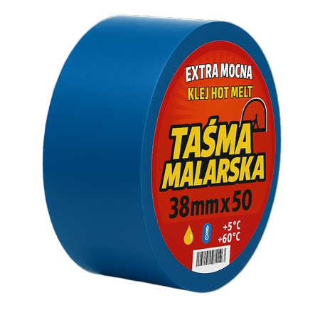 TAŚMA PAPIEROWA MALARSKA NIEBIESKA 38x50 BLUE MASKING do odcinania kolorów